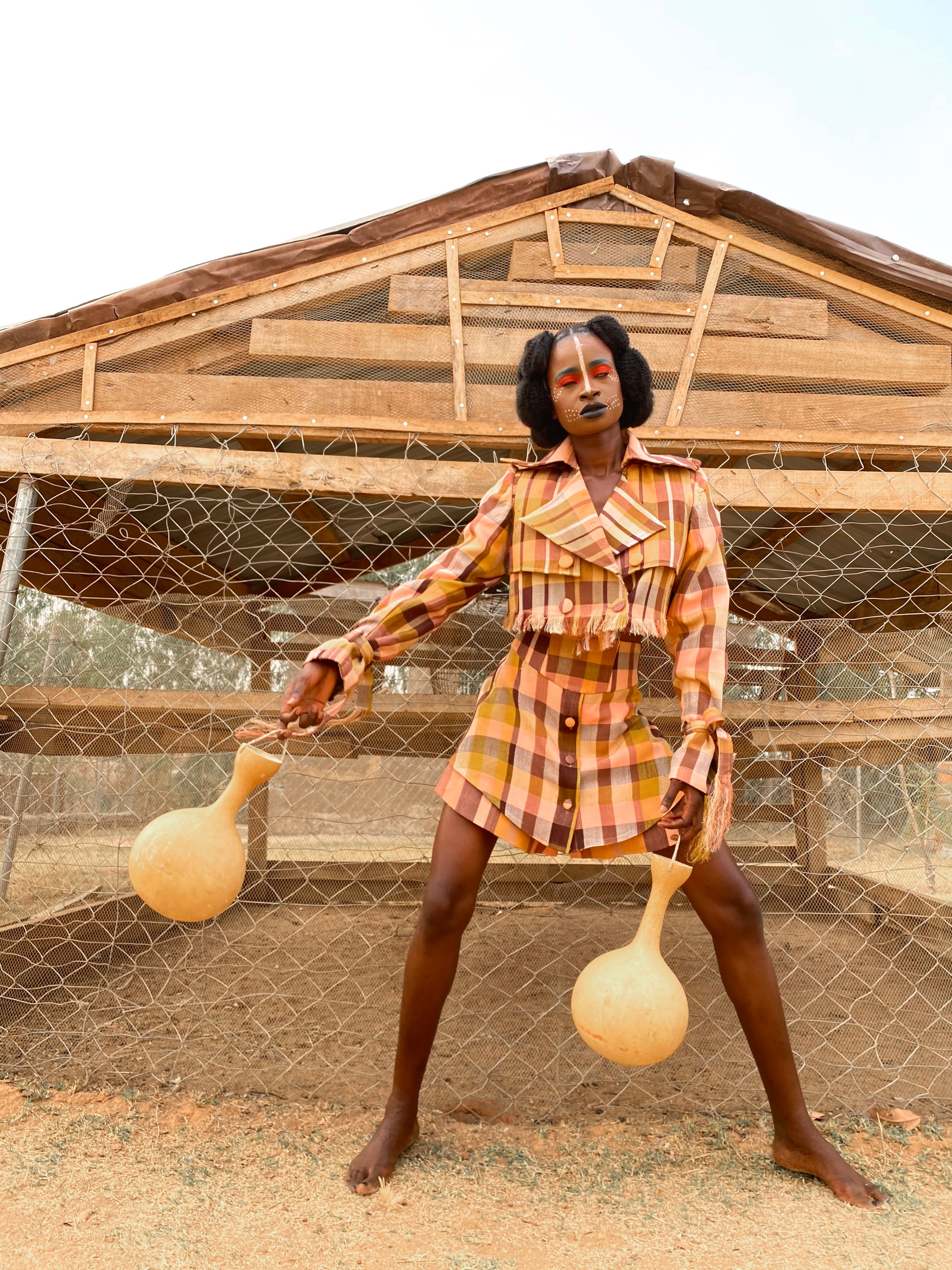 Ada Two Piece is a stylish and sustainable option featuring hand woven fabrics created by female artisans. The cropped jacket adds a touch of sophistication, while the mini skirt pant offers a playful twist. Elevate your wardrobe while supporting female empowerment with Ada Two Piece!