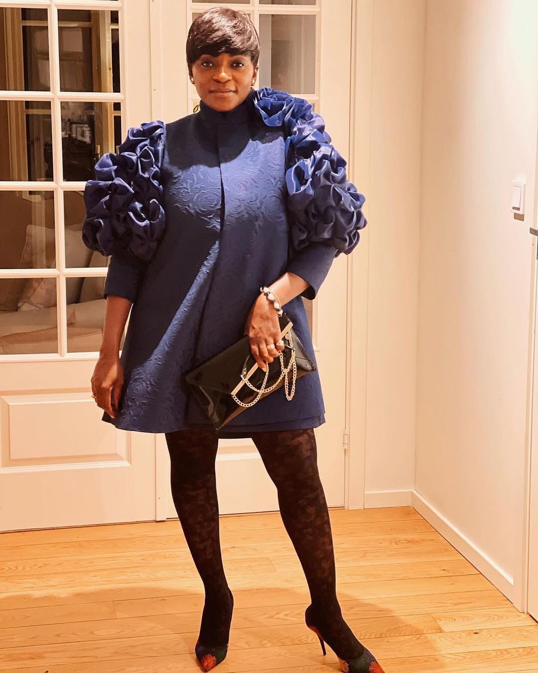 This stunning Angel CA Dress features a rich navy blue color and knee-length design, with bold, eye-catching sleeves. Perfect for any special occasion, this dress will make you feel confident and elegant. Stand out from the crowd in this show-stopping gown!