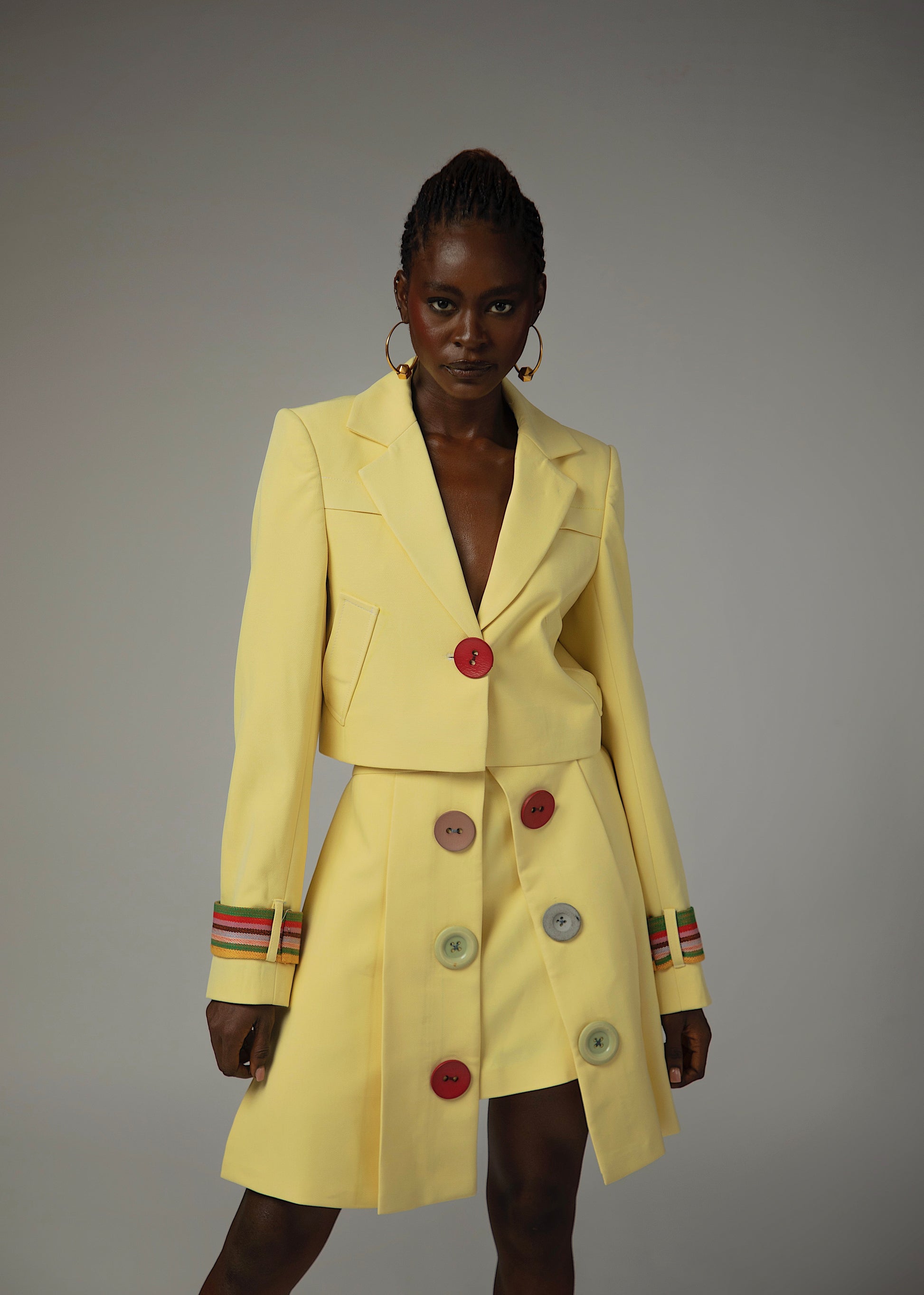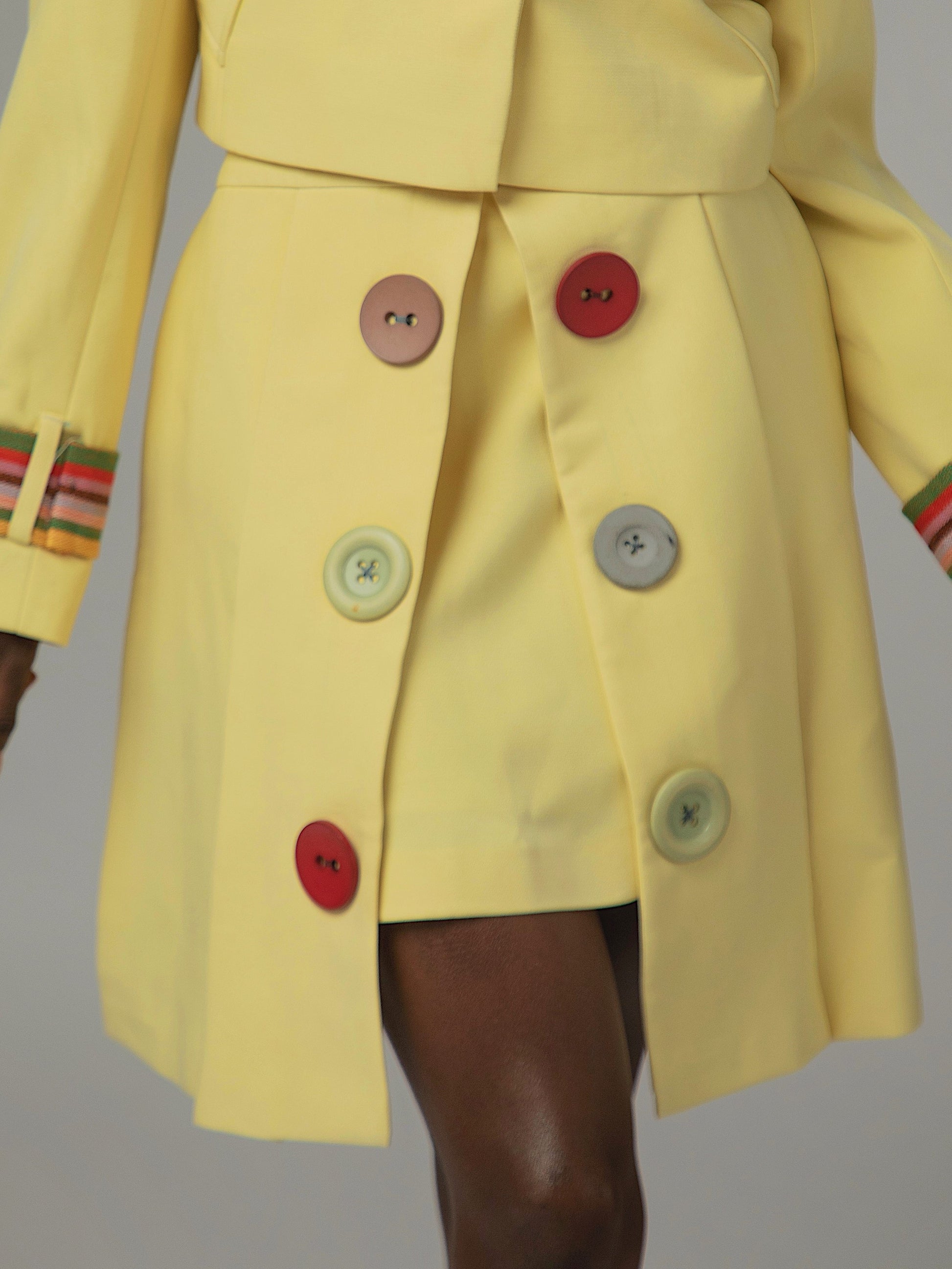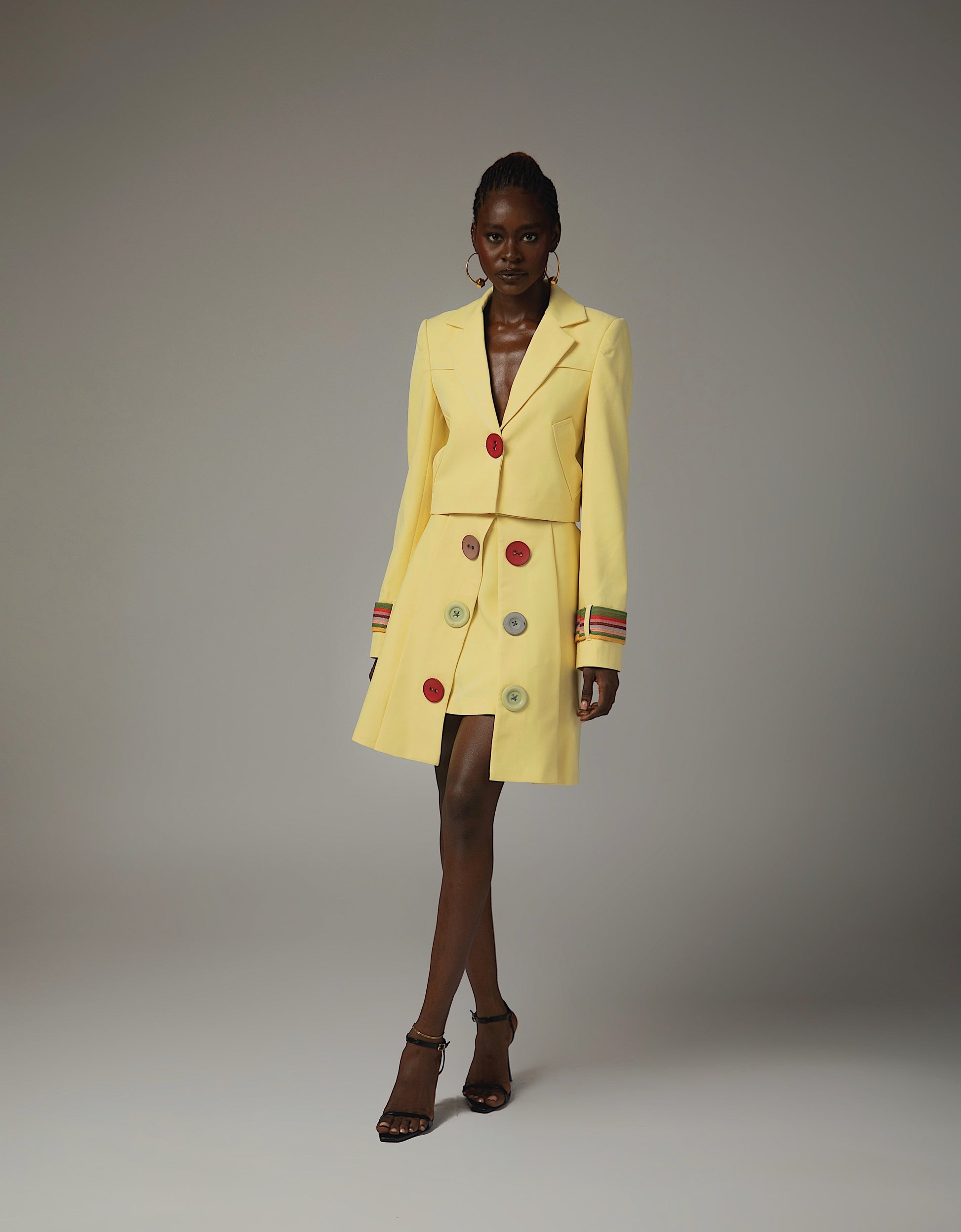 Turn heads with the Flo Flay Slit Mini Skirt, designed to blend elegance with a bold edge. Made from premium Crepe, this high-waisted mini skirt features a flattering flared design and a daring slit for added movement and style. Whether paired with the matching crop jacket or styled separately, it’s a must-have for a fashion-forward look.