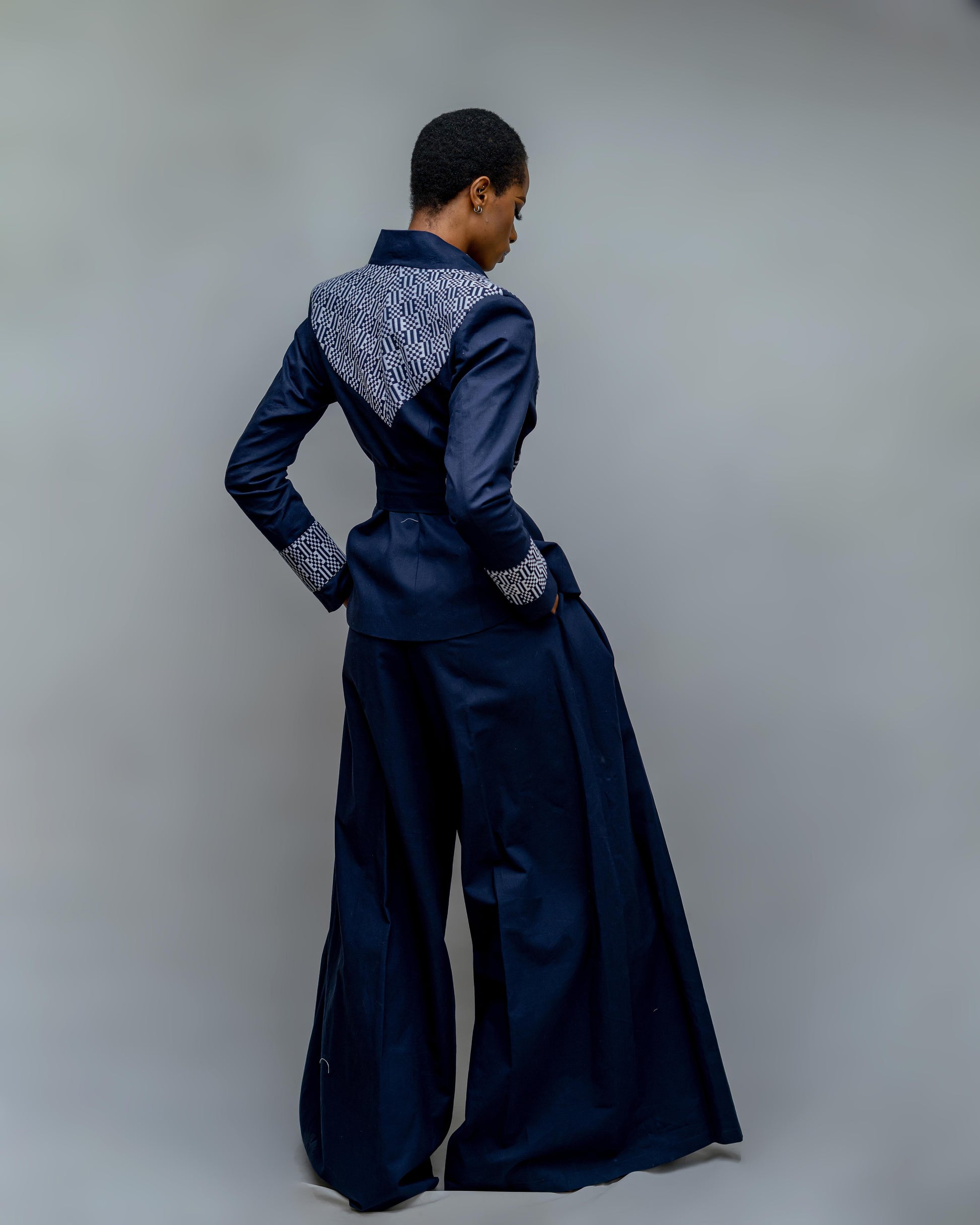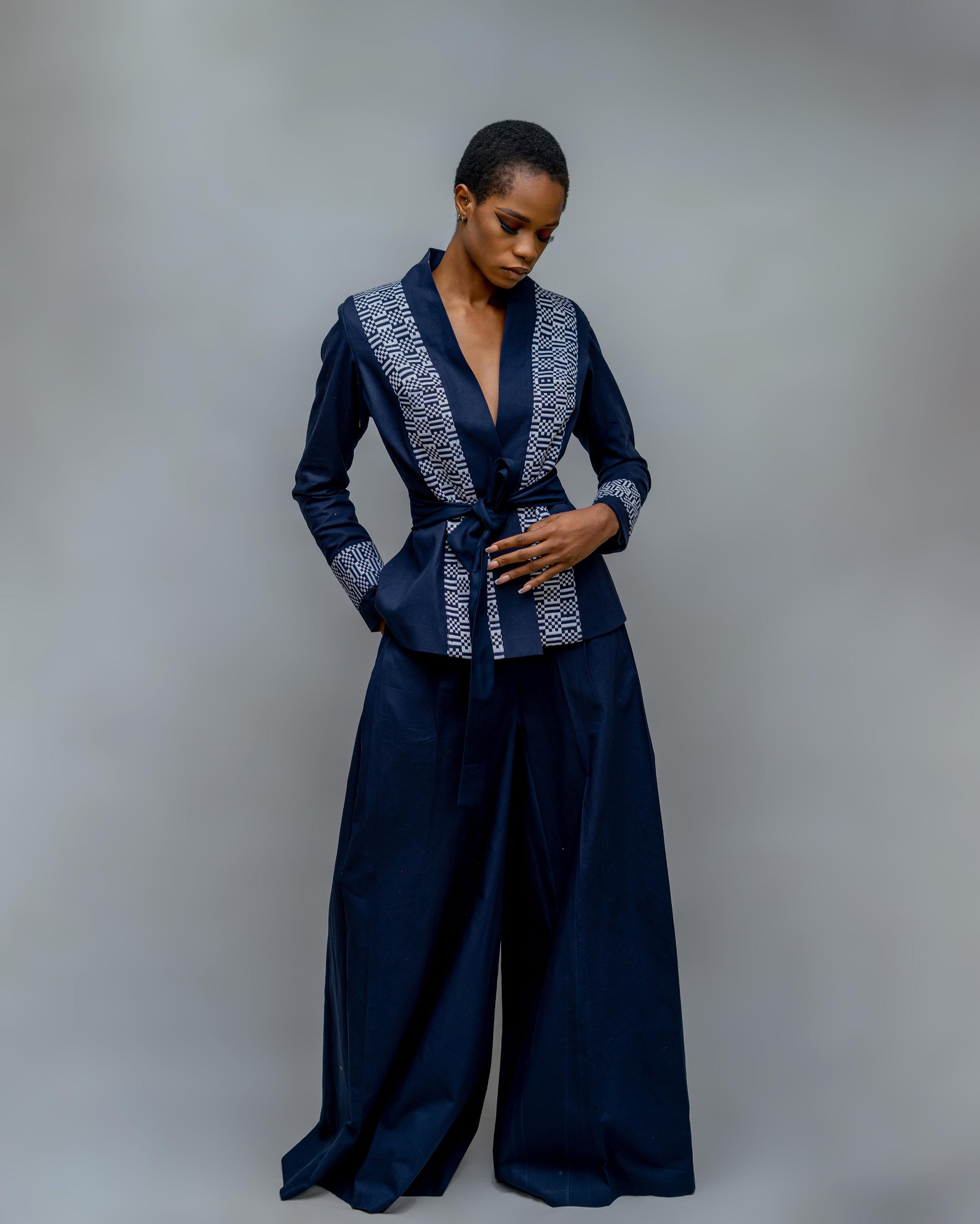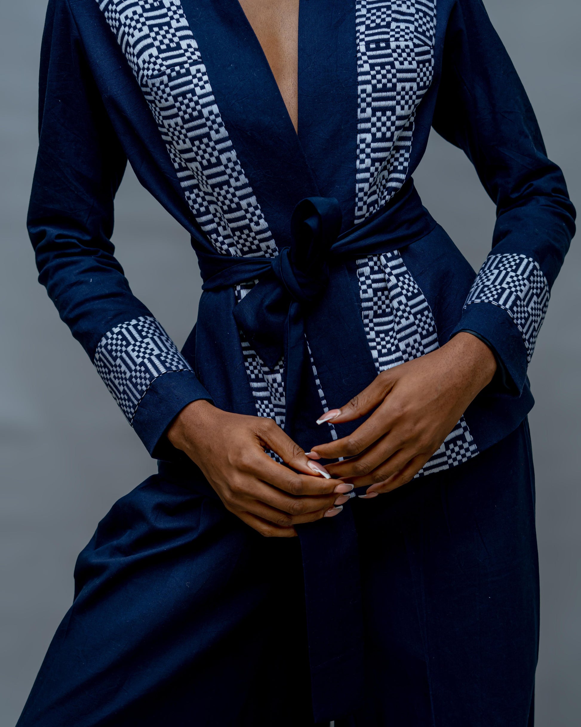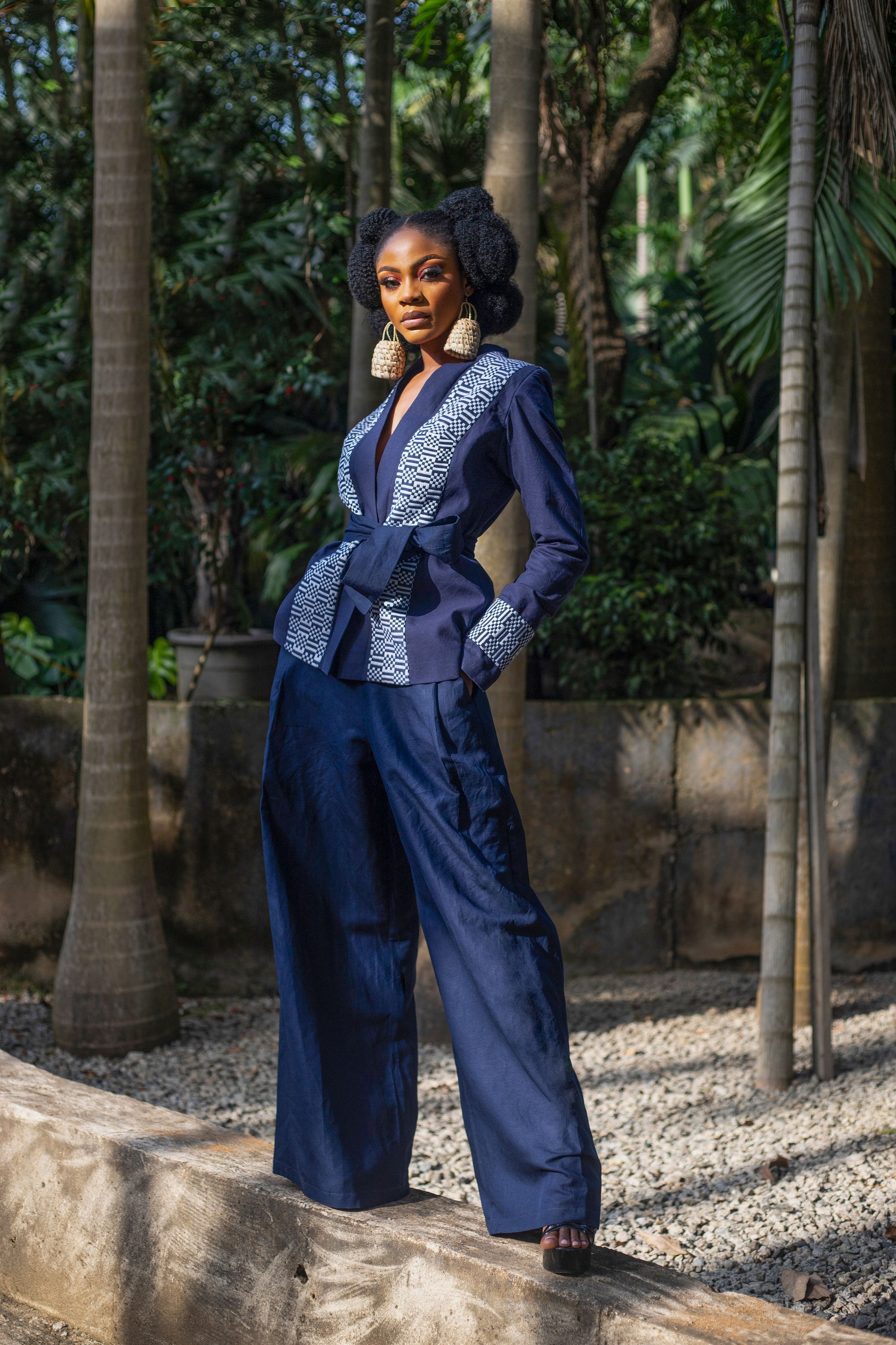 The Mimi pant suit is a beautiful 2 piece made from the combination of linen and cotton yarns woven by Indigenous.artisans. It is a stylish and breathable ensemble that combines the natural qualities of both fabrics.