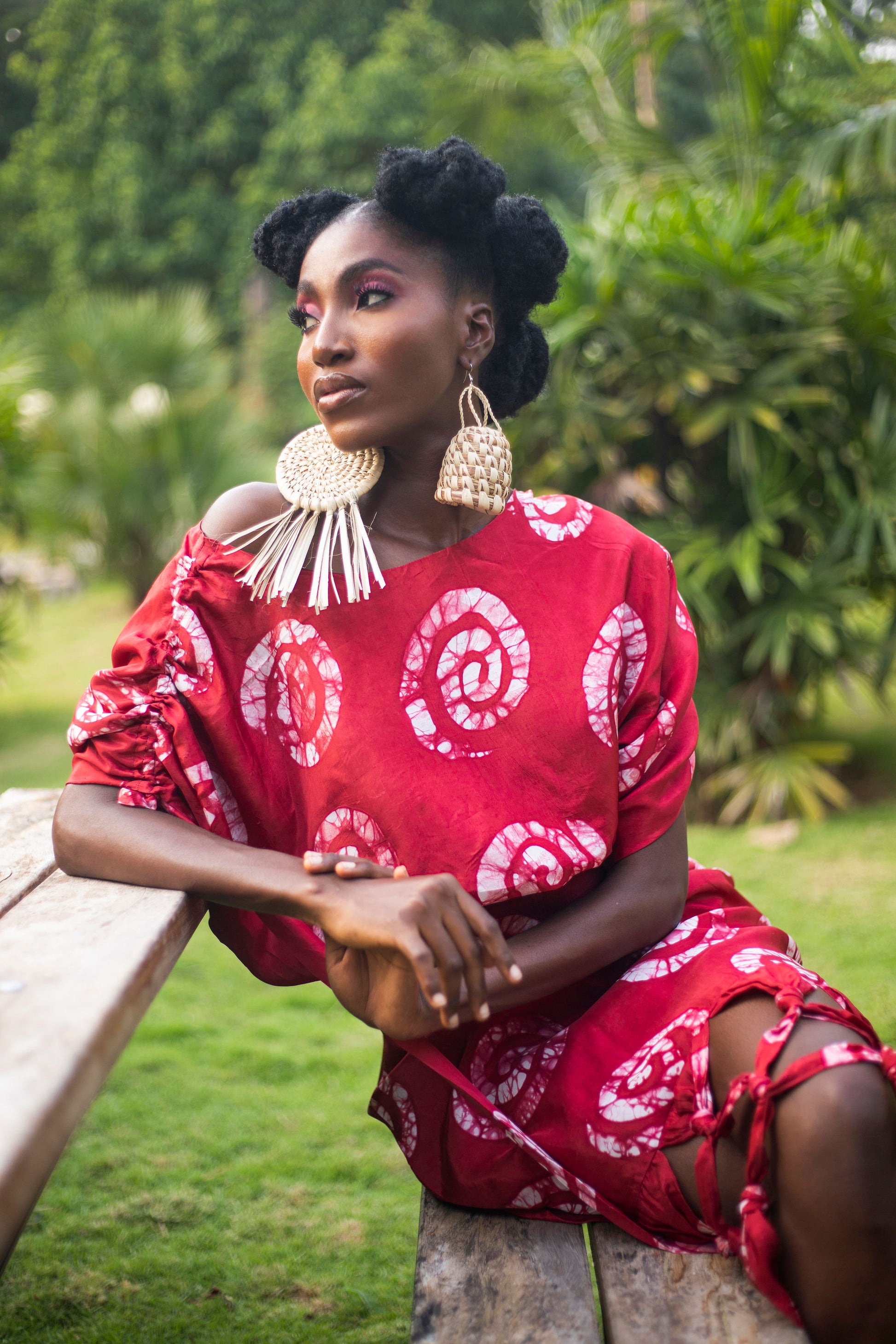 The top of this piece features a draw sting shoulder closure, for easy adjustment ensuring comfort and style. The hand drawn motifs, delicately etched onto lustrous silk fabric, add a touch of sophistication and uniqueness. Each motif is a testament to the indigenous African artisan's skill, making every piece one of a kind.