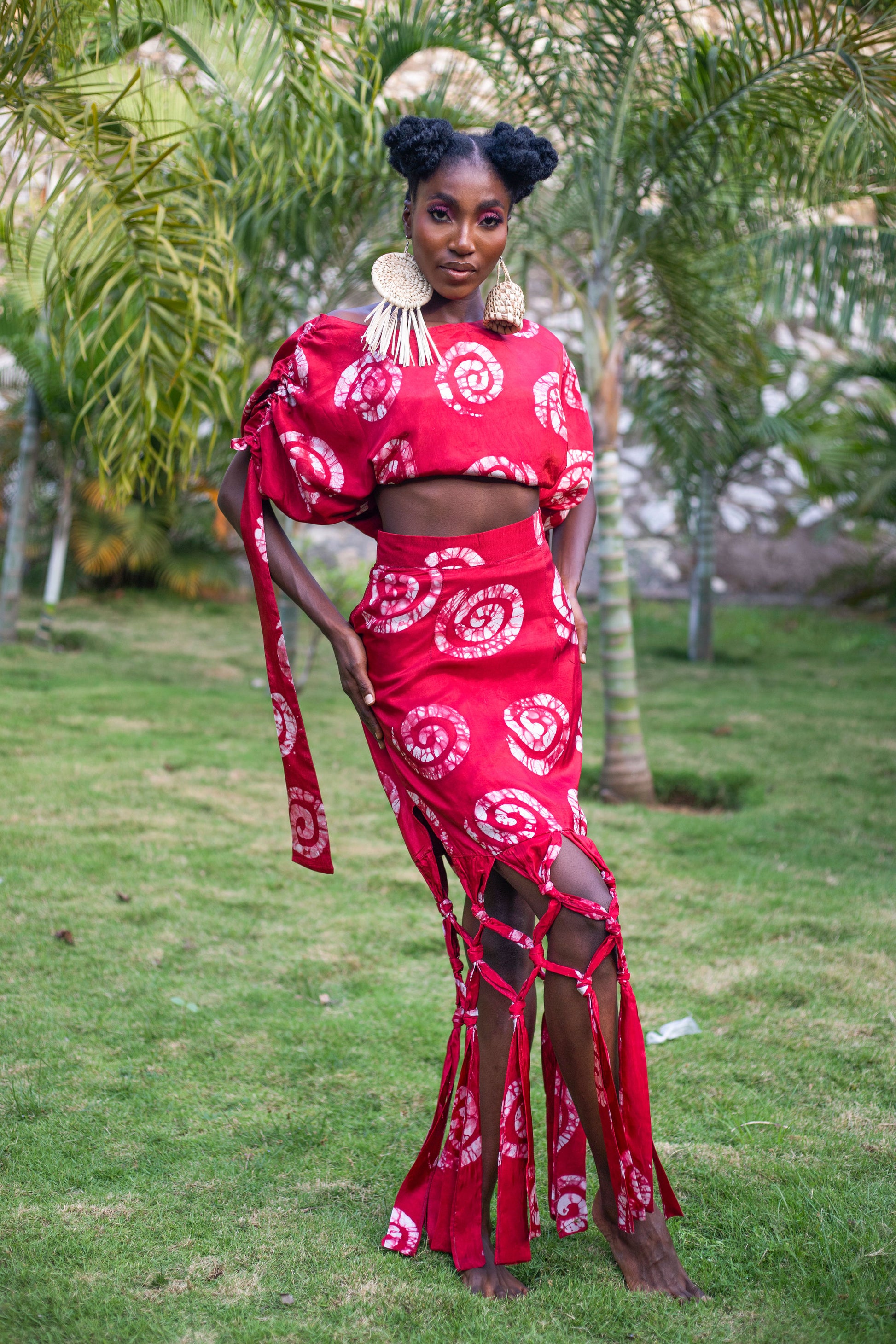 Indulge in the exquisite craftsmanship of the Cynthia Abila designed Red Spring Two Piece crafted from hand made silk, a true work of art for your wardrobe.